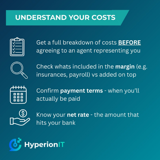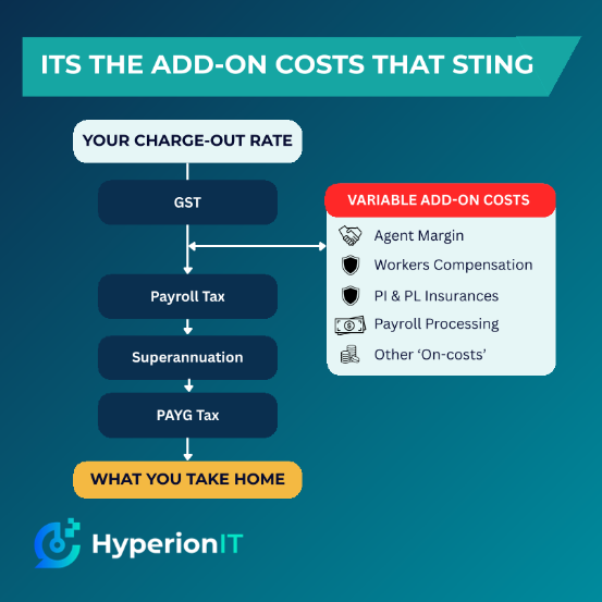 Always confirm whether quoted rates include on-costs such as insurance, payroll tax, admin fees and payment terms — your true take-home can vary significantly.